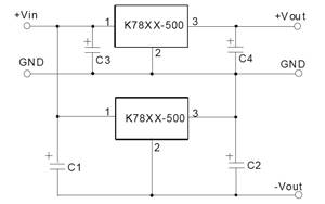 例如,用两个K7805-500开关型模块组成±5V输出电源时,若两个模块靠的很近,输出电容C4、C2未采用低ESR电容,且焊接处离输出端较远,则有可能输出的纹波和噪声电压受到相互干扰而增加,如图4所示。